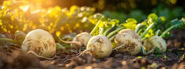 close up of rutabaga in the garden. selective focus