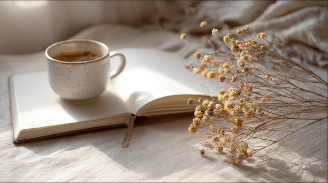 Cozy Morning Journal and Coffee Still Life Representing Sabbatical Reflection