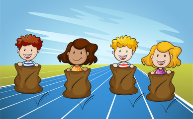 Jumping Sack Racing on Running Track