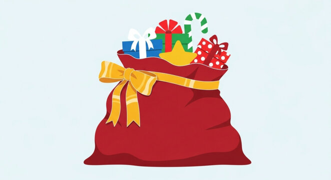Red sack filled with colorful gifts for New Year, Christmas