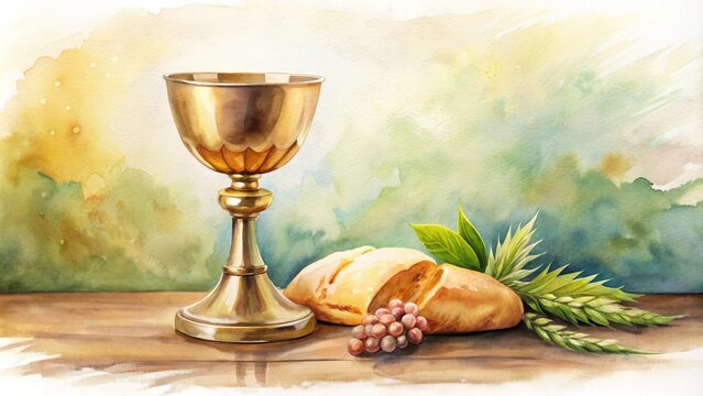 Watercolor painting of the Christian sacrament of Eucharist, Christian, sacrament, communion, bread, wine, religious