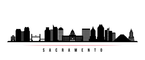 Sacramento city skyline horizontal banner. Black and white silhouette of Sacramento city, California USA. Vector template for your design.
