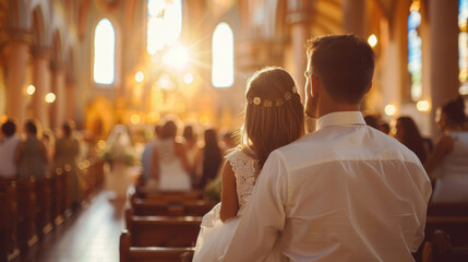 A couple renewing their vows in a candlelit church, surrounded by loved ones, symbolizing faith, love, and sacred Christian rituals