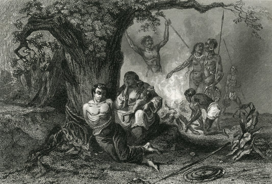 ancient Mayan tribe , priest brings human sacrifices 3d render