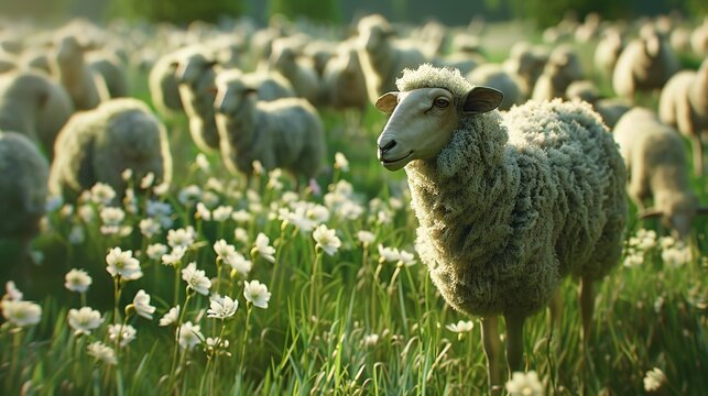 Flock of sheep in the meadow sacrificial animal