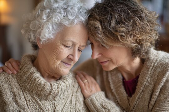 Two young Asian women hugging and comforting each other at home. A sad moment of farewell between friends or partners, showing emotional support, empathy, and love
