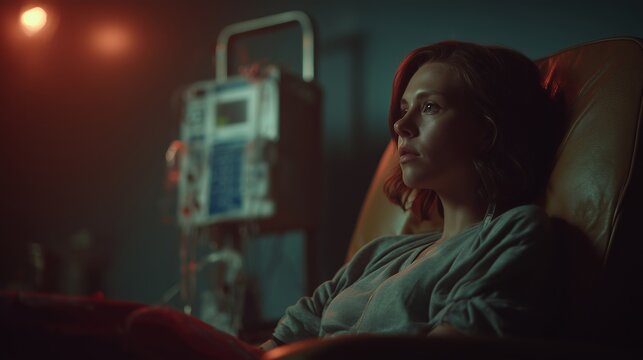 A woman doctor sitting in the corridor of a hospital tired and sad