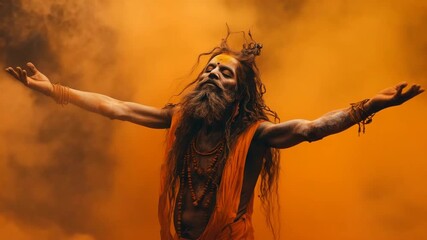 Vertical recreation of a hinduist sadhu ascetic in meditation