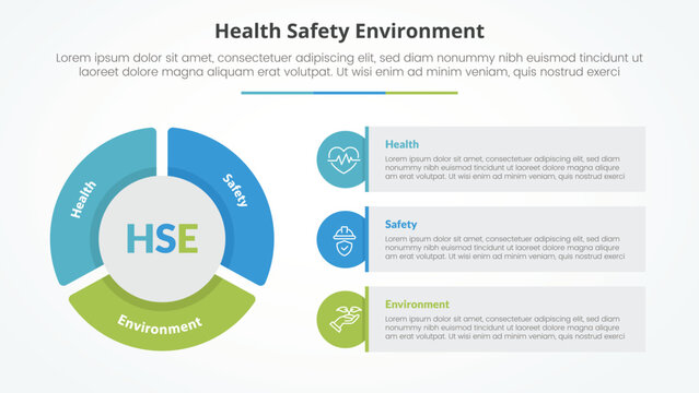 HSE infographic concept for slide presentation with big pie chart shape and round rectangle box with 3 point list with flat style