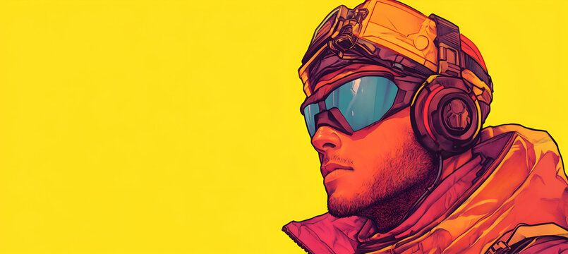 An engineer wearing safety gear, working on a project, plain light background