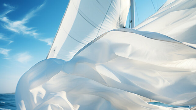 A close-up of billowing white sails against a clear blue sky, capturing the beauty of sailing Generative AI