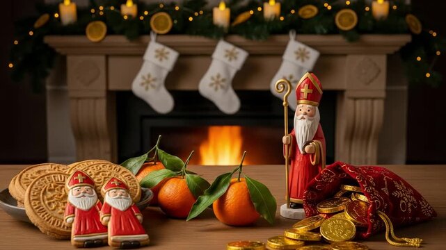 Sinterklaas, Dutch Saint Nicholas day in Netherlands Amsterdam and Belgium. Greeting card for holland holiday. Celebration concept for children european party in Saint Nicolas day five december