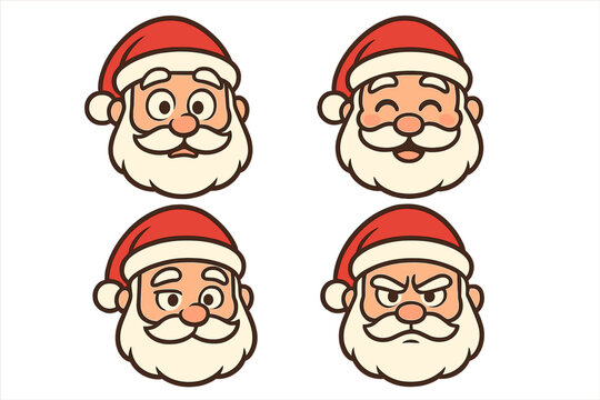 Santa Claus emoticons set. Cute Christmas character faces with various emotions. Happy, angry, winking, surprised. Xmas holiday cartoon vector illustration head icon pack.