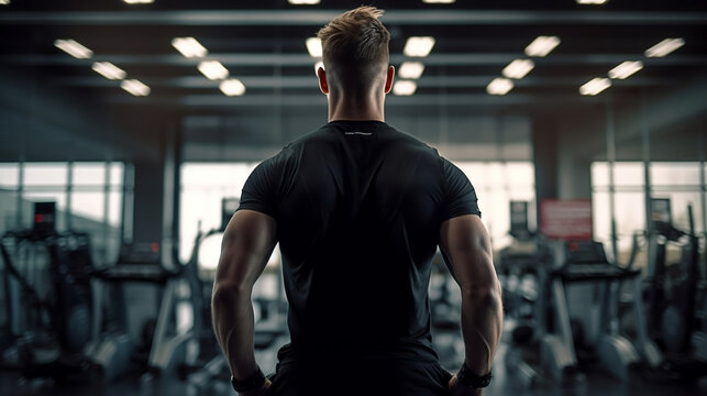 un homme de dos qui s'entraine à la salle de sport, fitness, musculation