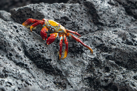 Galapagos, Sally Light Foot Crab, on wet dark grey rock