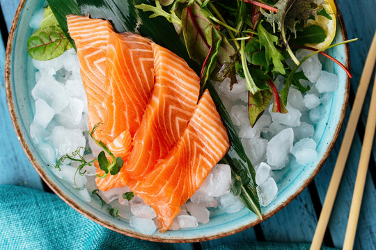 Salmon sashimi on ice Japanese food