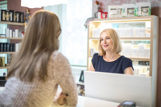 Hispanic women hairdressers styling hair in busy beauty salon using professional tools engaging in friendly conversation with clients surrounded by salon chairs and mirrors