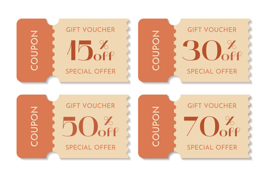 A set of 4 discount gift coupons features a vibrant orange color scheme
