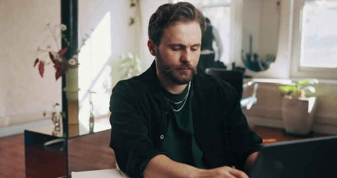 Beautiful stylish young woman plus size body positive using laptop at beauty salon office, small business owner