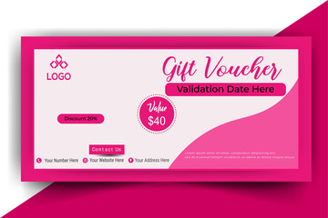 Gift Voucher for Beauty salon and Cosmetics Spa banner social media thumbnail cover design,  Promotional Sale Discount editable Banner design, Shopping gift card layout, discount voucher design
