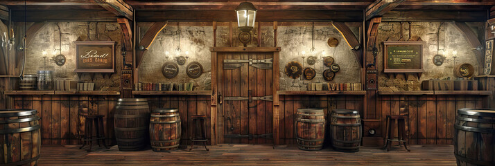 Wild West Saloon with Swinging Doors, Barrels, and Poker Tables. Western Drama Set.