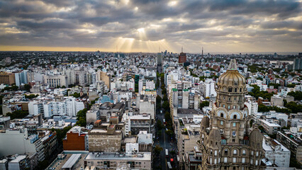 aerial Montevideo Palacio salvo Skyline cityscape Uruguay capital at sunset