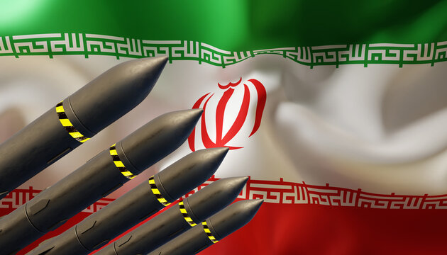 Missiles with Iran flag. Bomb, chemical weapons, missile defense, a system of salvo fire