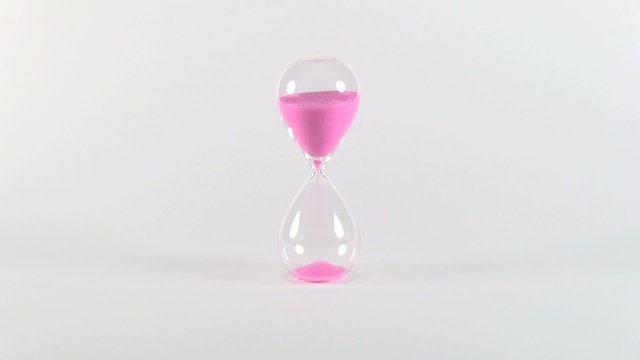 Hourglass in the sunset golden hour. Sand passing through the glass bulbs of an hourglass measuring the passing time as it counts down to a deadline or closure on a sunset/ sunrise beach background.