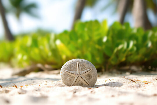 Starfish on sandy beach invoking travel and relaxation