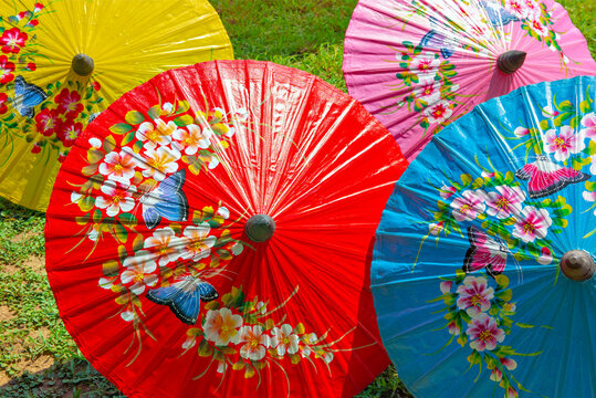 Colourful Handcraft Paper Umbrella at Bo Sang Umbrella Village, One of most famous tourist destination in Chiang Mai, Thailand