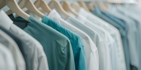 Dry Cleaning Service Displaying Variety of Hanging Clothes. Concept Dry Cleaning Services, Hanging Clothes, Variety In Display, Professional Attire, Laundry Solutions