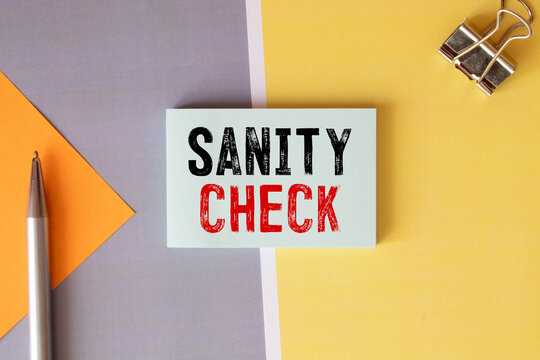 Concept of sanity check write on sticky notes isolated on Wooden Table.