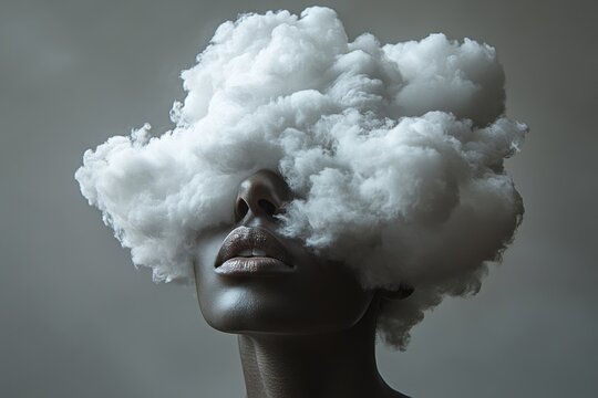 Cloud Overhead Portrait of Solitude and Grief in a Surreal Context