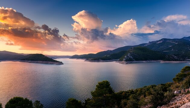 sea of clouds over sant antoni reservoir at sunset pobla de segur catalonia