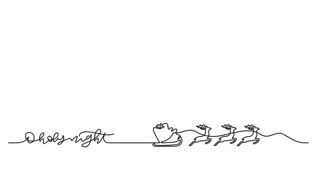 santa claus, sinterklass with carriage and o holy night letter line art vector, christmas greeting card, invitation, background