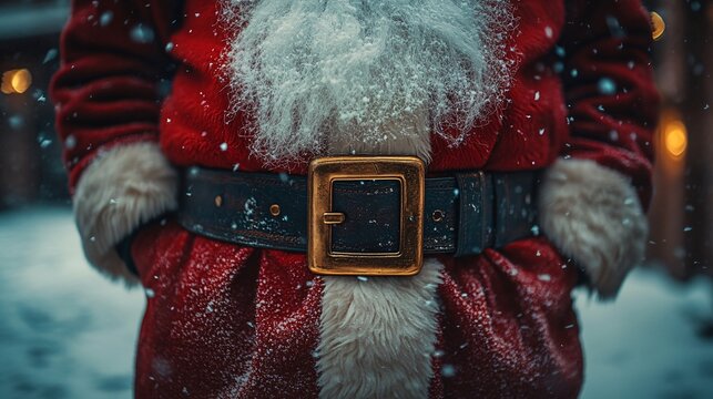 Detailed Santa Claus Outfit with Belt and Snow Background
