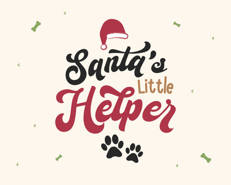 Santas little helper card. Merry christmas card, beagle dog card design, puppy christmas, christmas greeting card, paws