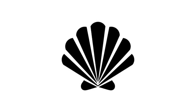 Vector illustration of black silhouette of a scallop shell icon representing the camino de santiago pilgrimage, isolated on transparent background