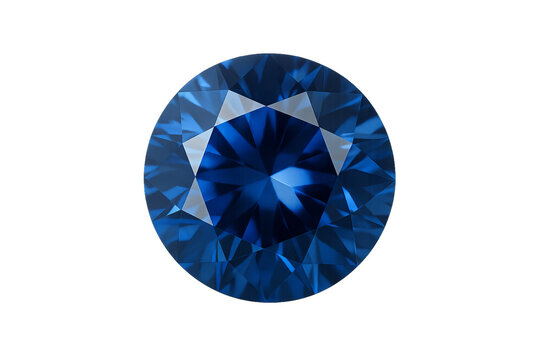 Brilliant round-cut blue sapphire gemstone with sparkling facets isolated on transparent background png, luxurious precious stone for jewelry design