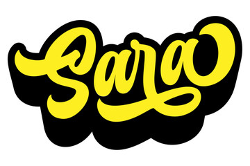 Sara Woman's Name in Brush Typography Text on Purple Background