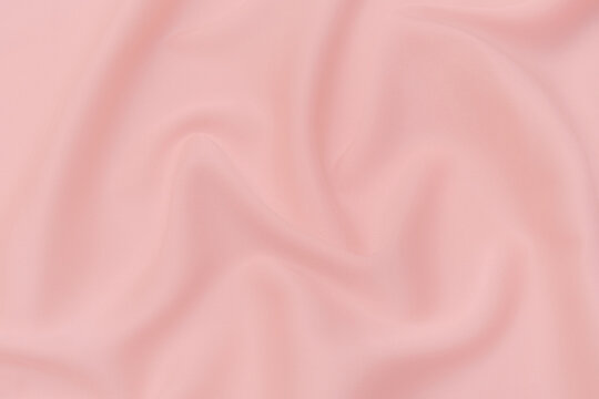 Close up fabric. The silk fabric is laid out waves. Pink sateen fabric for background or texture.