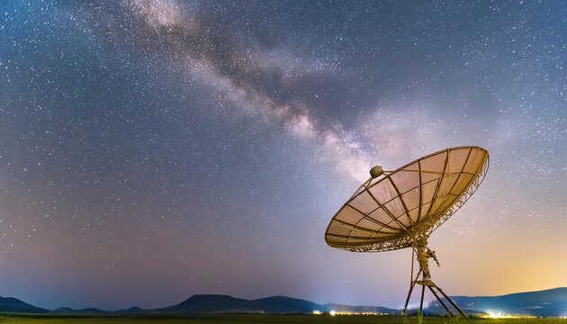 Satellite Dish Receiving Cosmic Signals Amidst the Starry Expanse of the Endless Universe