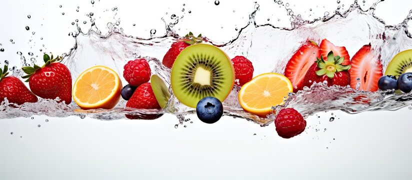 Fruit falls into water creating a splash