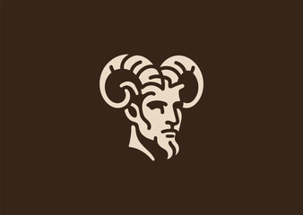 A simple minimalist faun satyr logo in line style, symbolizing nature, mischief, and mythical energy