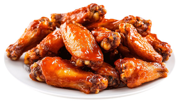 Pile of Chicken Wings Covered in Sauce. On a White or Clear Surface PNG Transparent Background.