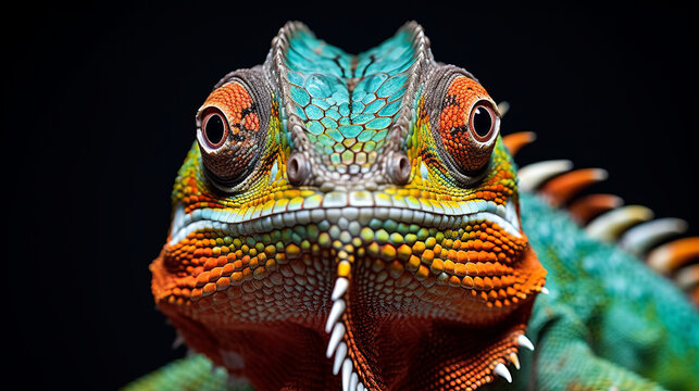 Lizard on the hunt for insects on a hot volcano rock warming up in the sun as hematocryal animal in macro view, isolated and close-up to see the scaled skin of the little saurian in detail eye to eye