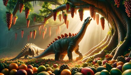 cartoon dinosaur land scene with animal dino in the jungle illustration for the children