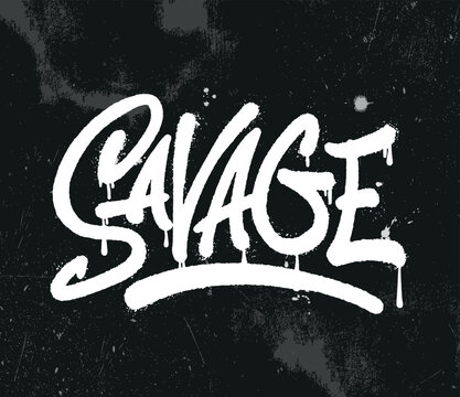 Savage. Gym motivation t-shirt print, logo, emblem. Lettering graffiti. Hand drawn vector illustration. element for flyers, banner and posters.