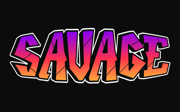 Savage word graffiti style letters. Vector hand drawn doodle cartoon logo savage illustration. Print for poster,t-shirt,tee,logo,sticker concept