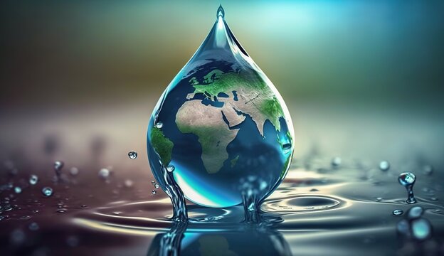 World water day. A globe in the shape of a drop of water. Saving water and world environmental protection concept. Generative AI.
